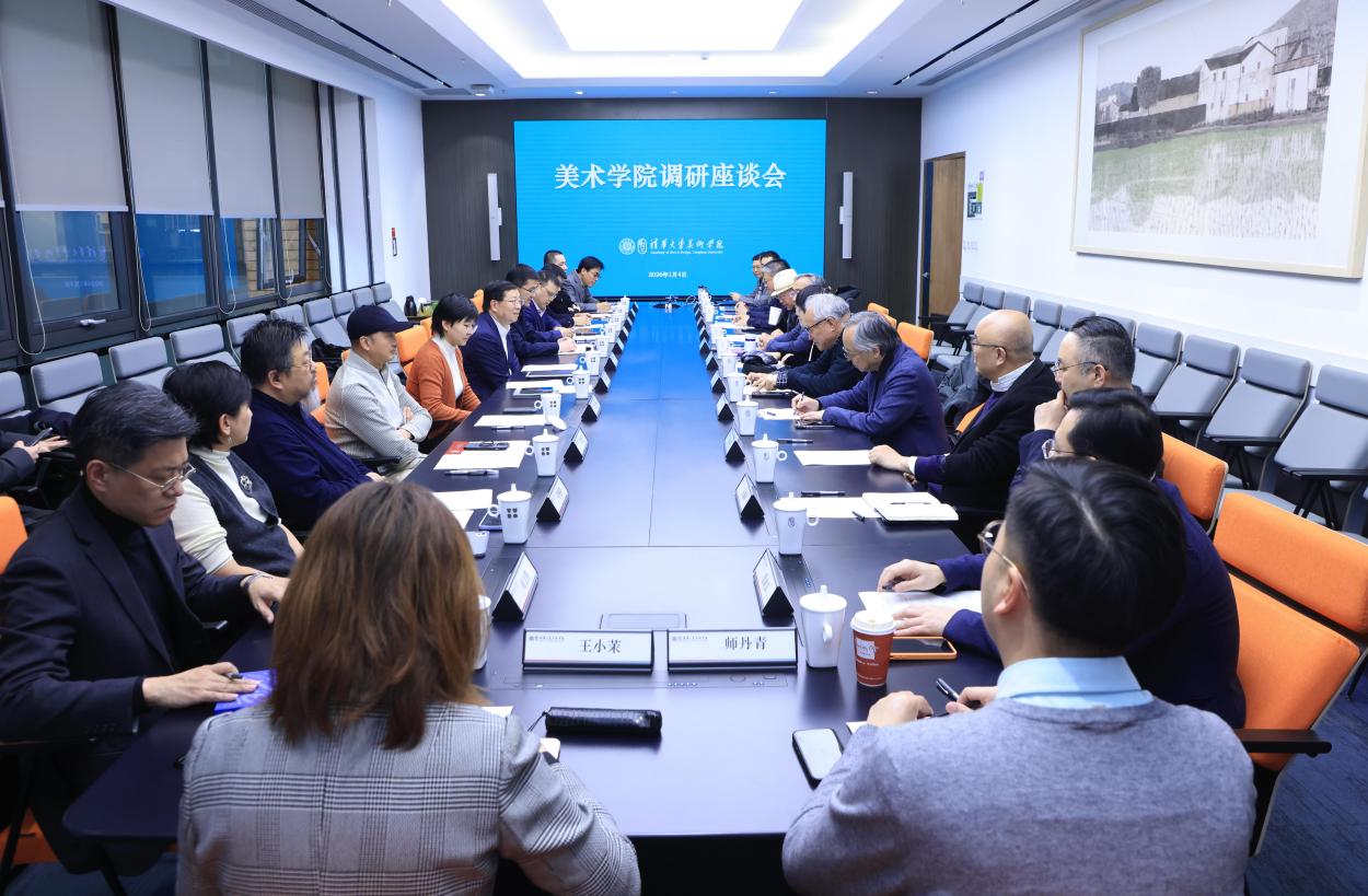 在听取相关工作汇报和交流发言后,邱勇对美术学院坚持“艺科融合”的发展理念和教育特色,积极谋划推动各项工作不断取得新突破给予肯定,并指出,2026年是美术学院建院70周年,2029年是其前身中央工艺美术学院并入清华30周年。美术学院要着眼长远、把握机遇,充分认识“十五五”时期是夯实基础、全面发力的关键时期,进一步增强紧迫感,以更大魄力推动改革发展,加快推进各项重点任务落地落实。要把握人工智能变革机遇,创新人才培养模式,促进更广领域、更深层次的学科交叉与融合,力争形成一批有特色、引领性的学科方向,产出一批有全球影响力的重要成果;加强国际交流合作与平台建设,打造高水平国际化教师队伍,面向全球积极延揽人才,增进跨界交流合作,为学院发展持续注入流动活力;发挥学科专业支撑作用,助力美丽校园和大学文化建设;坚持以高质量党建引领高质量发展,营造规范有序、风清气正的良好氛围,为繁荣发展中国美术及艺术设计事业、推进文化自信自强贡献更多清华力量。