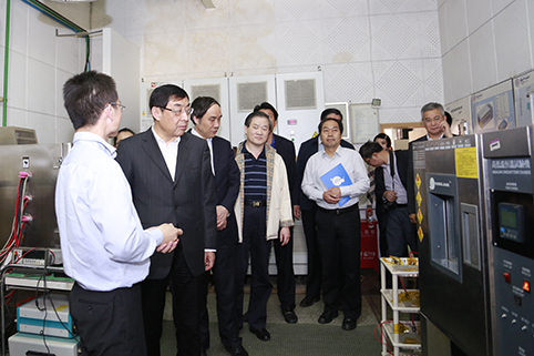 马培华一行首先来到清华大学汽车安全与节能国家重点实验室,听取了汽车系副主任李建秋教授就实验室队伍建设、人才培养、科学研究和成果转化的汇报。随后,马培华参观了驾驶模拟仿真试验台、动力电池实验室和燃料电池实验室,饶有兴致地观看了相关实验设备和实验演示,并不时询问技术难点与应用前景。马培华对实验室师生取得的突出成绩给予充分肯定的同时指出,实验室的研究成果还要进一步产业化、市场化,为国家经济社会发展作出更大贡献。