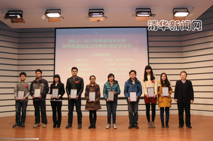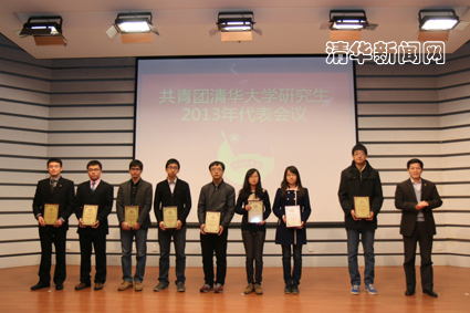 会议表彰了2012-2013学年度清华大学研究生共青团工作先进集体,机研111班等16个集体荣获“清华大学先进集体(研究生)”荣誉称号,土木建管系等10个院系研团总支获得“清华大学优秀研究生团总支”荣誉称号,汽车系等9个院系研团总支获得特色工作奖或工作进步奖。土木建管系团总支、电机系电博10班分别围绕基层团组织建设工作进行了经验分享。