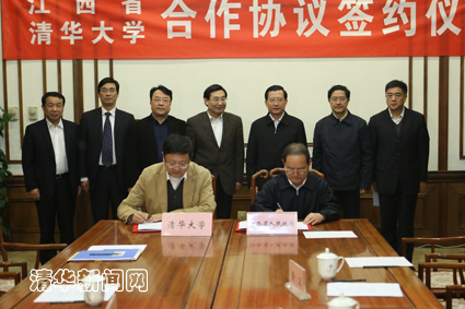 鹿心社、陈吉宁分别代表双方共同签署《江西省人民政府——清华大学战略合作协议》。双方将在战略咨询、科技项目合作与攻关、创新合作平台、科技成果转移转化、人才培养和交流、教育培训等方面开展全方位、多领域、深层次的合作。