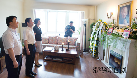 清华新闻网6月22日电(记者 襄 桦)中国共产党的优秀党员,杰出的水利水电工程专家和工程教育家,我国水利水电事业的主要开拓者之一,中国科学院、中国工程院院士,清华大学原副校长张光斗教授,于2013年6月21日13时42分在北京逝世,享年101岁。6月22日上午,清华大学校长陈吉宁、校党委书记胡和平、校党委常务副书记陈旭、常务副校长程建平一行来到张光斗先生的家中吊唁,看望其亲属,并代表学校敬献了花篮和挽联。