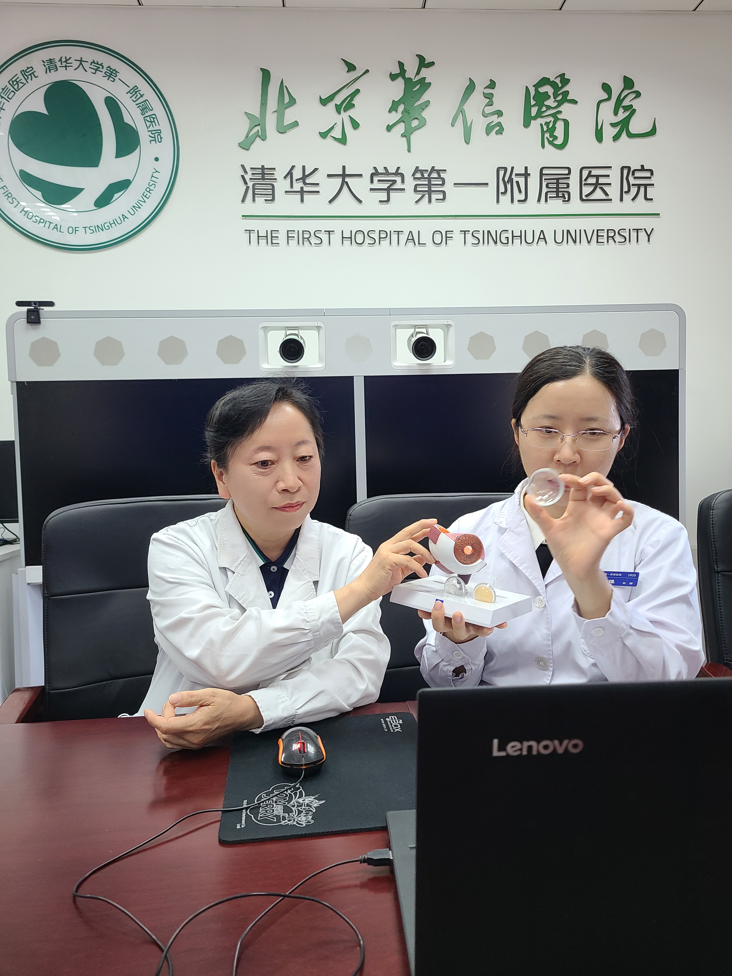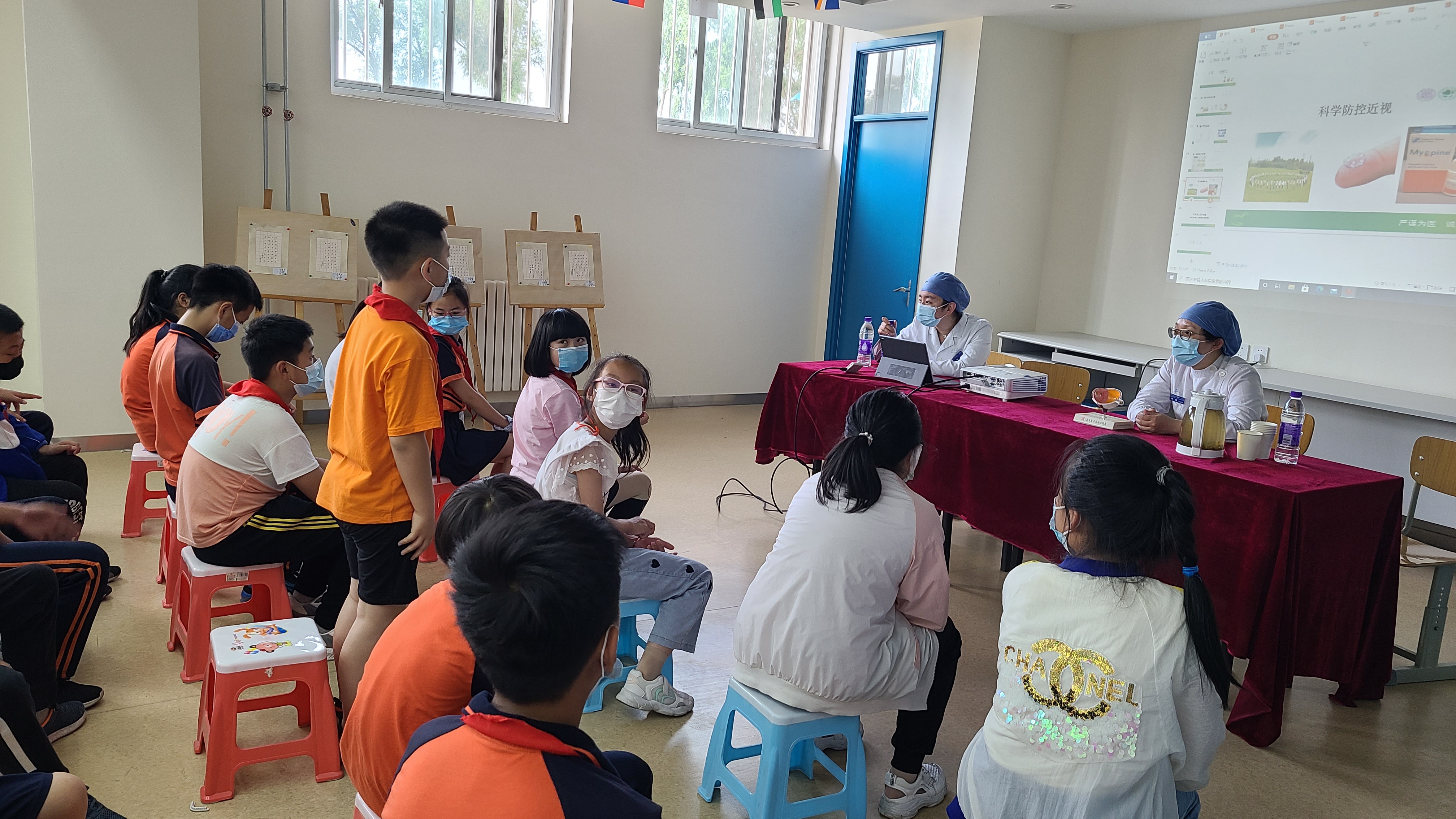 6月15日下午,应北京博雅学校邀请,清华大学第一附属医院眼科医师周琳、主管护师胡佳为学校五至七年级学生进行“科学防控儿童近视”的讲座,这也是眼科开展6月6日“全国爱眼日”的系列活动之一。周琳介绍,近视儿童在成年后更容易患眼底疾病,因此防控近视刻不容缓。随后,胡佳通过眼球模型,生动形象地向学生们介绍眼睛是如何看清东西的,引起孩子们的浓厚兴趣。周琳通过提问来提醒同学们合理用眼的重要性。同学们认真听讲,踊跃发言,表示要做到每天两小时或每周10小时的户外活动,保障睡眠和营养,纠正不良用眼行为,要在良好的视觉环境用眼,每半年进行一次眼科检查,建立屈光档案等。