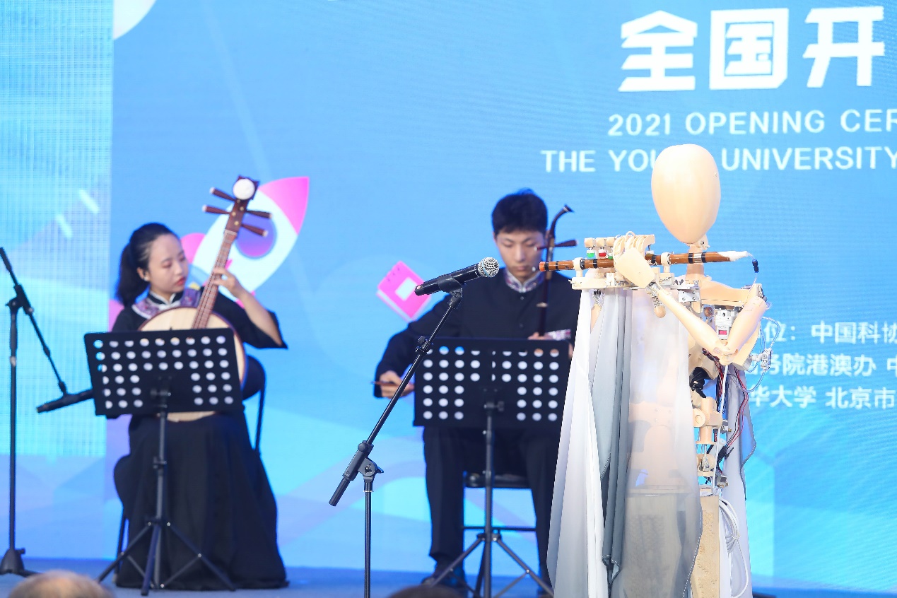 清华大学未来实验室墨甲机器人与学生艺术团民乐队演奏《紫竹调》