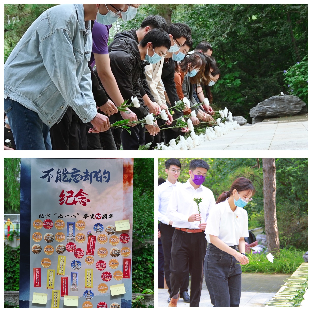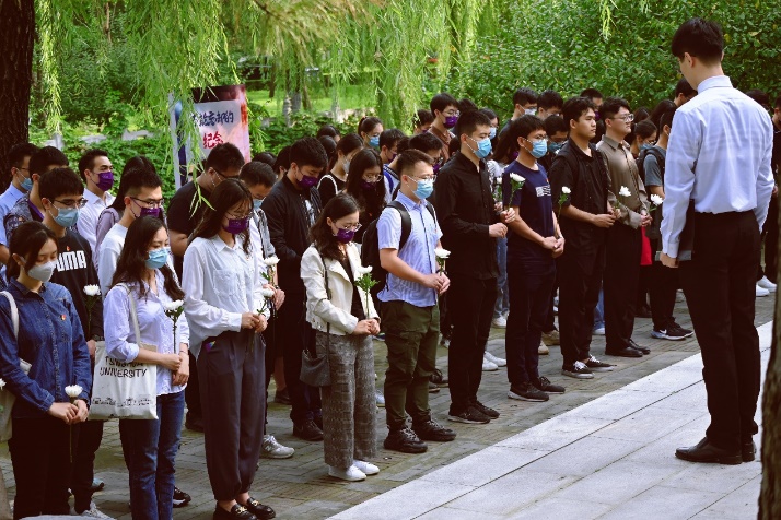 上午九时许,全体师生肃立于纪念碑前,向为民族独立、人民解放、国家富强而献出生命的烈士们默哀。