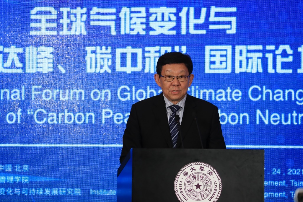 彭刚代表清华大学欢迎与会专家莅临清华园和在线参会。他指出,应对气候变化是人类社会的共同事业,在力争2030年前实现碳达峰、2060年前实现碳中和重大战略目标的指引下,大学要担负起时代重任。近年来,清华大学高度重视气候变化和可持续发展议题,充分发挥学科、科研、人才和国际合作优势,大力加强智库建设,创办了一系列高层次、国际性、品牌化的论坛,牵头成立了世界大学气候变化联盟,成立清华大学碳中和战略研究院,并积极在联合国环境规划署高级别会议、全球气候行动峰会和即将召开的COP26会议中建言献策。本次论坛聚焦国家战略、政府角色、市场创新和社会力量等多元主体,吸纳各方智慧,促进交融互通,为推动清华大学和公管学院在构建人类命运共同体和实现可持续发展的历史进程中承担重要使命,具有十分重要的意义。他希望各位委员、专家充分表达观点、贡献新知,共同描绘世界绿色发展的蓝图和人类命运共同体的美好明天。