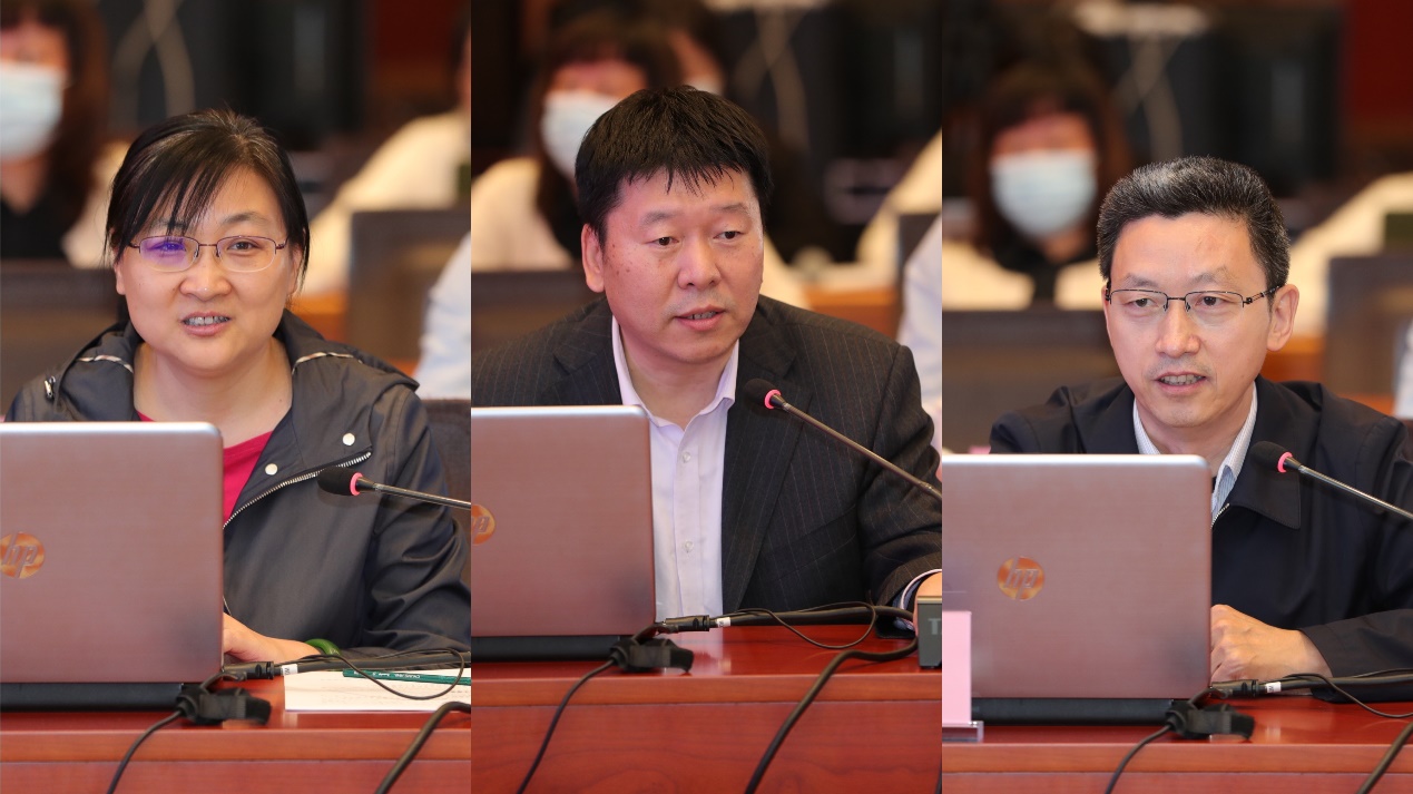 尹霞、张涛、王建民(从左至右)汇报学科发展规划