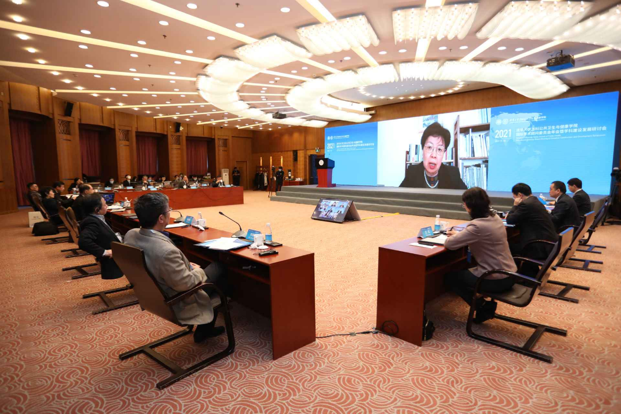 本次会议采用线上线下相结合的方式举办,共有25位委员和特邀专家参会。中国科学技术协会名誉主席韩启德,中国人体器官捐献与移植委员会主任委员黄洁夫,教育部医学教育专家委员会主任委员、中国高等教育学会副会长林蕙青,中国工程院副院长、中国医学科学院北京协和医学院校长王辰,国家创新与发展战略研究会学术委员会常务副主任黄奇帆,万科集团董事会主席郁亮等13位中方委员及特邀专家通过线上和线下的方式出席会议。国际学术顾问委员会外方主席、戈登和贝蒂摩尔基金会主席哈维·芬伯格,哈佛大学陈曾熙公共卫生学院院长米歇尔·威廉姆斯,约翰斯·霍普金斯大学公共卫生学院院长艾伦·麦肯齐,比尔和梅琳达·盖茨基金会首席执行官马克·苏兹曼,全球疫苗免疫联盟总裁赛斯·伯克莱等12位海外委员在线参会。清华大学校长邱勇视频致辞,清华大学副校长兼教务长杨斌、学校相关部处负责人、卫健学院党政联席会成员及全体教师参会。开幕式由清华万科卫健学院常务副院长梁万年主持。