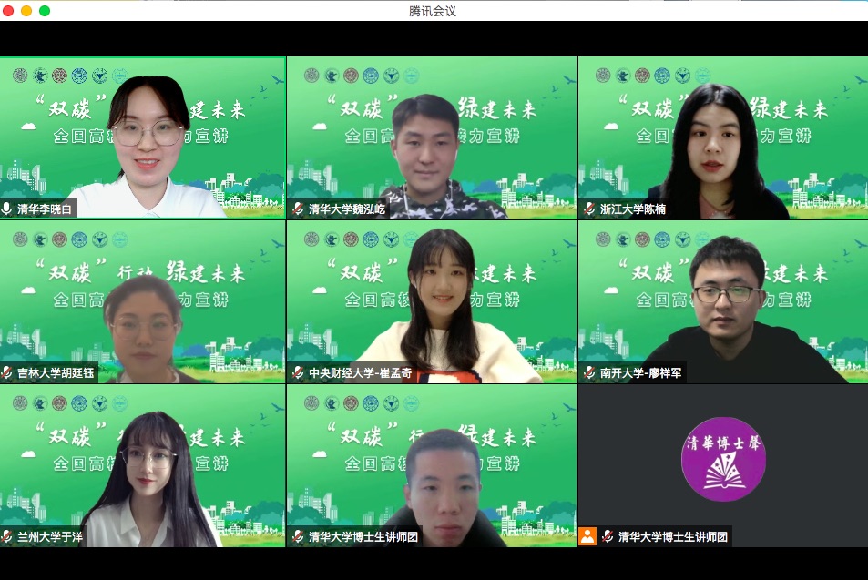 清华新闻网11月15日电 11月9日下午,以“‘双碳’行动,绿建未来”为主题的全国高校党史接力宣讲活动在云端开讲。清华大学博士生讲师团联合中央财经大学博士生宣讲团、南开大学博士生讲师团、吉林大学博士生讲师团、浙江大学研究生理论宣讲团、兰州大学“青马”工程大学生骨干理论宣讲团的青年讲师多角度解码“双碳”目标,充分展现了新时代绿色低碳发展中的青年力量。本次宣讲通过微博、抖音平台线上直播,累计观看人数达11.2万。