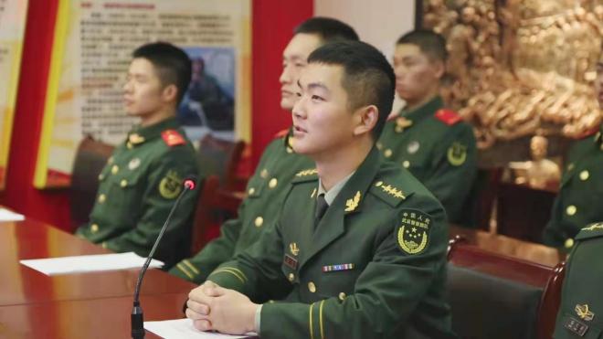 驻央视武警中队班长闫超超展示了共学成果,他表示电影中最让他深受感染的片段就是美军在撤退路线上发现已经冻僵的“冰雕连”,全体战士直到最后一刻都坚决执行作战任务,将军人职责履行到生命的最后一秒。通过与经博19党支部同学交换观影感想,闫超超表示:“我们都应珍惜这来之不易的和平,并将这份珍惜之情付诸实践,从日常工作开始,从修身立德开始,不负和平二字。”作为一名革命军人、武警战士,他也更应做好自己的本职工作,在执勤上打起十二分精神,投身部队建设与祖国建设。