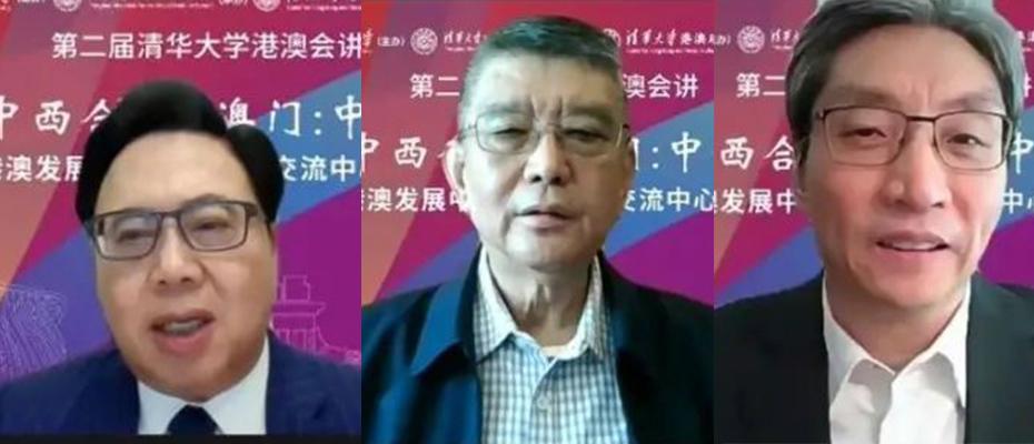 清华新闻网11月16日电 11月13日下午,由清华大学主办,清华大学深圳国际研究生院和清华大学港澳研究中心承办,深圳市海湾经贸科技促进中心、紫荆学院协办的第二届清华大学港澳会讲在线上举办。此次活动以“香港:中西合璧+澳门:中西荟萃——支持港澳发展中外文化艺术交流中心+合作基地”为主题,旨在搭建激发学术生机、碰撞思想火花的交流平台,探讨香港和澳门在新形势、新定位下如何发挥自身优势,促进中外文化艺术交流发展的新方向。全国人大法律委员会原主任委员乔晓阳,清华大学副校长、教务长杨斌,全国港澳研究会副会长王振民,中共深圳市委外事工作委员会办公室副主任孙怀忠出席港澳会讲开幕式并致辞。清华会讲理事会副理事长韩景阳、清华大学深圳国际研究生院党委书记武晓峰等参加会讲活动。