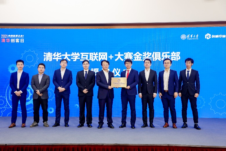 王希勤为“清华大学‘互联网+’大赛金奖俱乐部”授牌