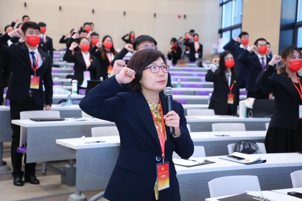 会上,张婷带领全体与会代表重温了入团誓词,以激励全体团员不忘初心、牢记使命,将入团誓词内化于心、外化于行,自觉加强组织性、纪律性,在青春的舞台上奉献自我,用实际行动做一名合格的共青团员。