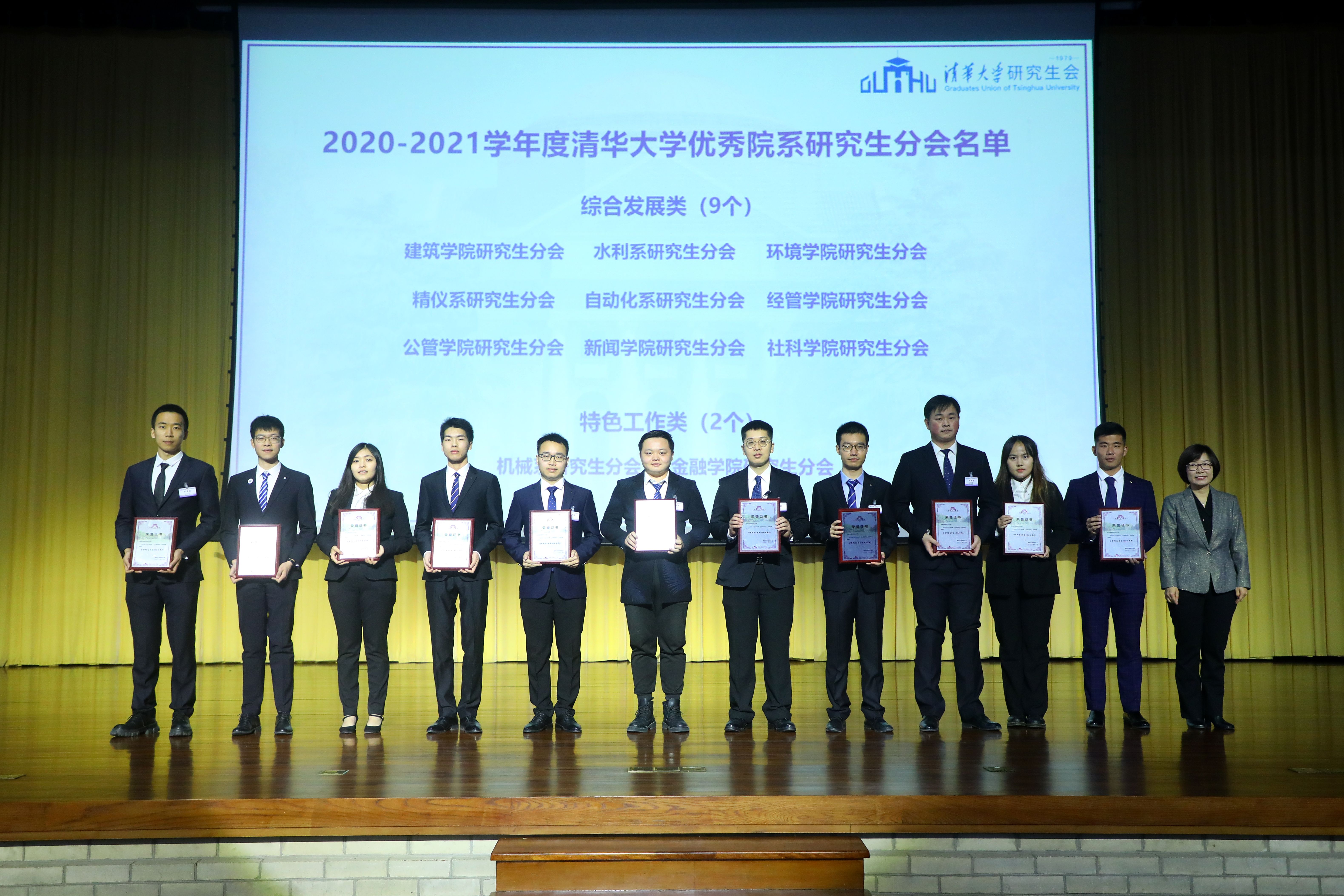 大会授予2020-2021学年度工作表现突出、成绩显著的11个研究生分会“清华大学优秀院系研究生分会”荣誉称号,同时授予校系两级研究生会共188名研究生同学“小研之星”荣誉称号。