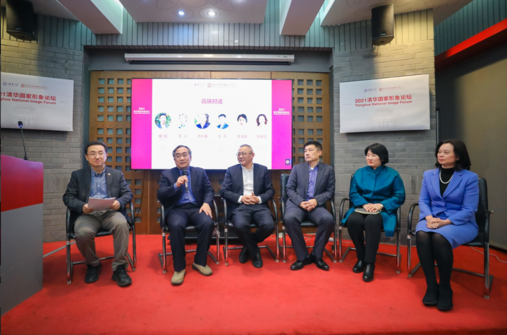 论坛还邀请了五位资深专家围绕论坛主题举行了高端对话,由清华大学新闻与传播学院党委书记胡钰担任主持人。清华大学党委宣传部常务副部长、新闻中心主任覃川,中交集团党委工作部副部长查长苗,爱德曼国际公关公司中国区首席执行官王东,大型中俄纪录片《这里是中国》总策划陈波亚,伟达公关原高级副总裁、北京2008奥运会公关顾问孙玉红等共同探讨了国家形象塑造与传播的规律和特征。