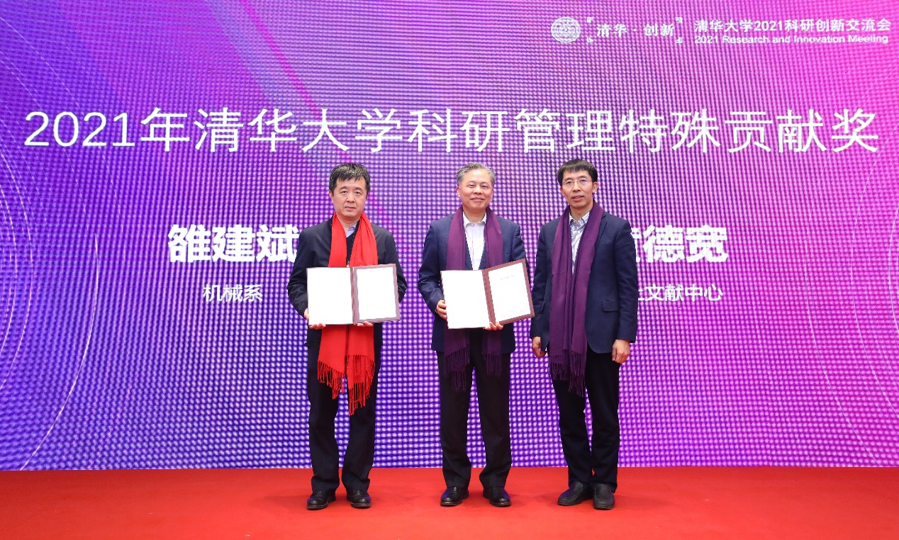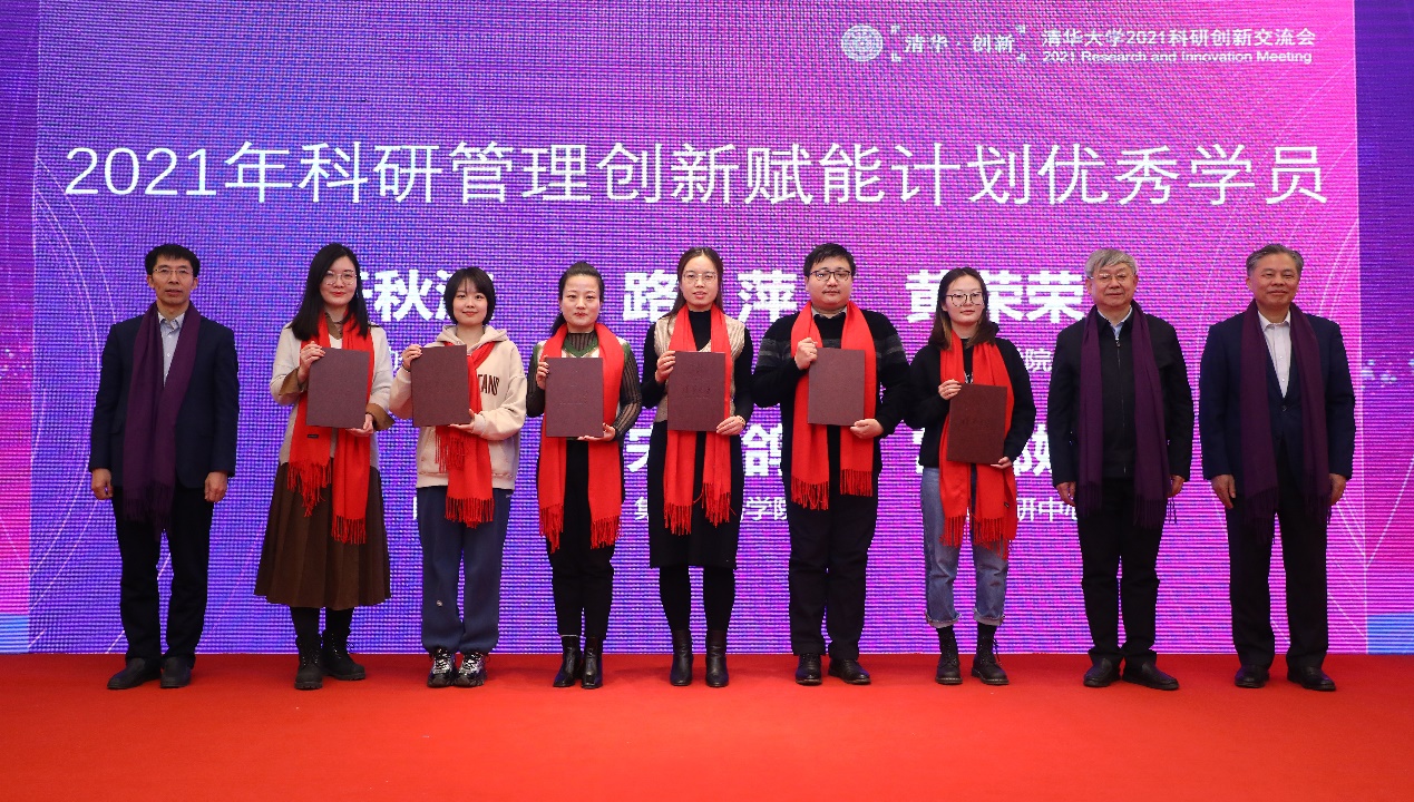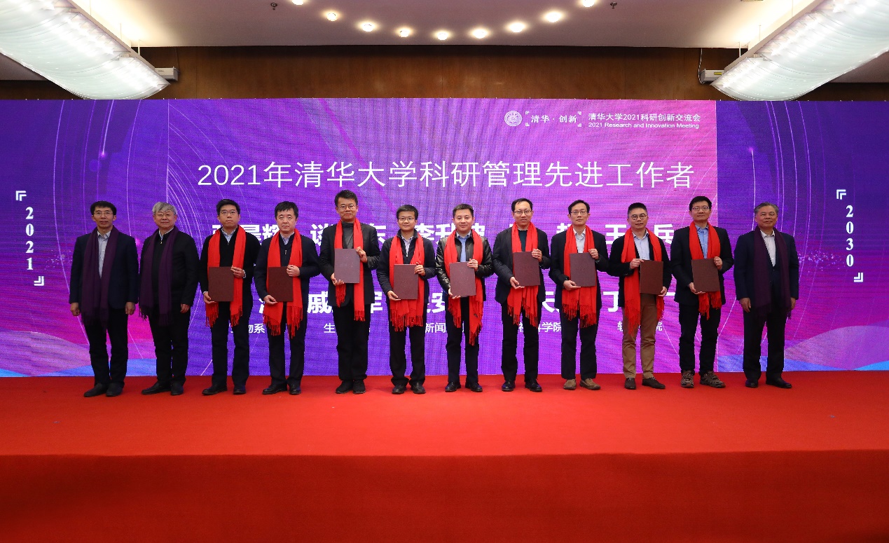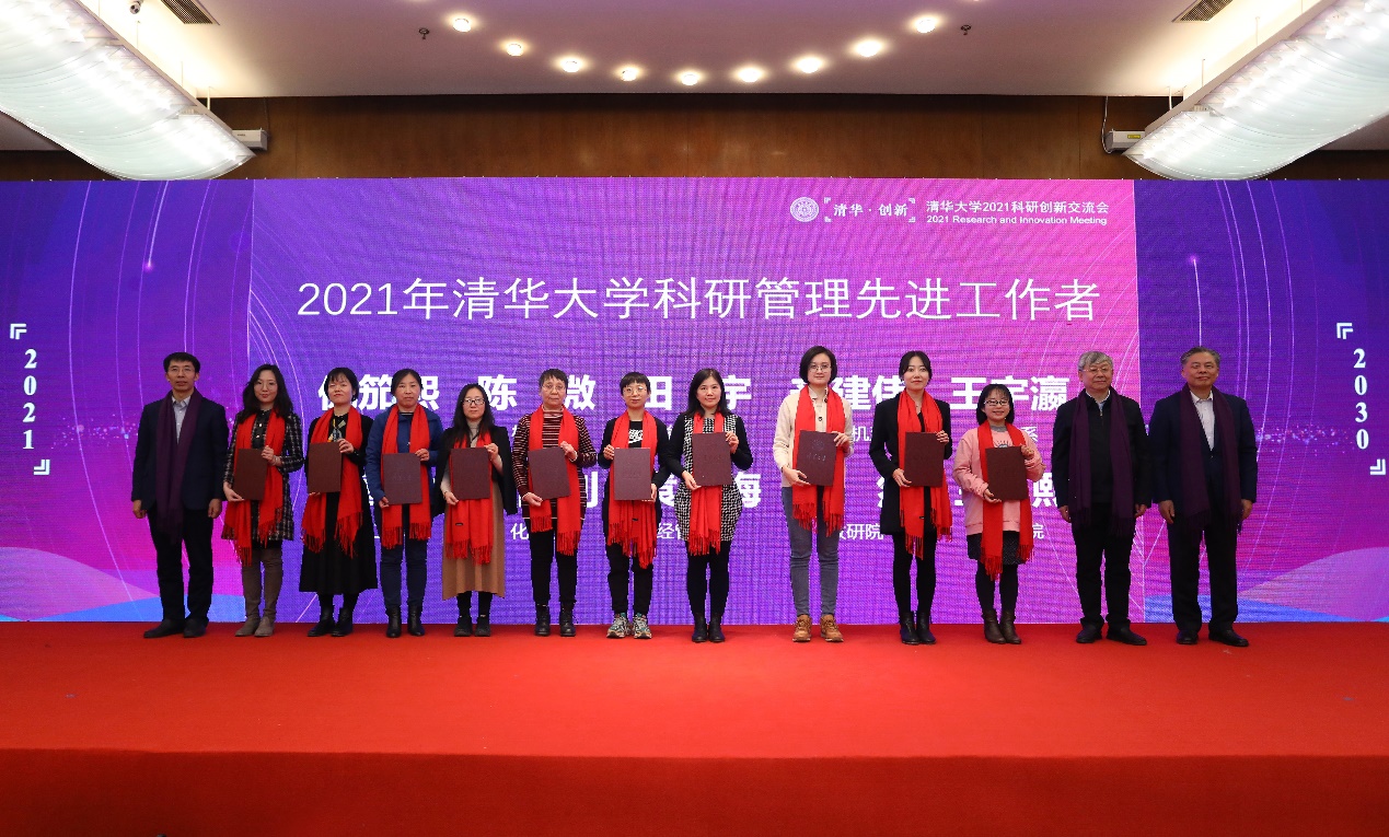 会议对2021年清华大学科研管理特殊贡献奖获得者、2021年清华大学科研管理先进工作者和2021年科研管理创新赋能计划优秀学员进行了表彰。