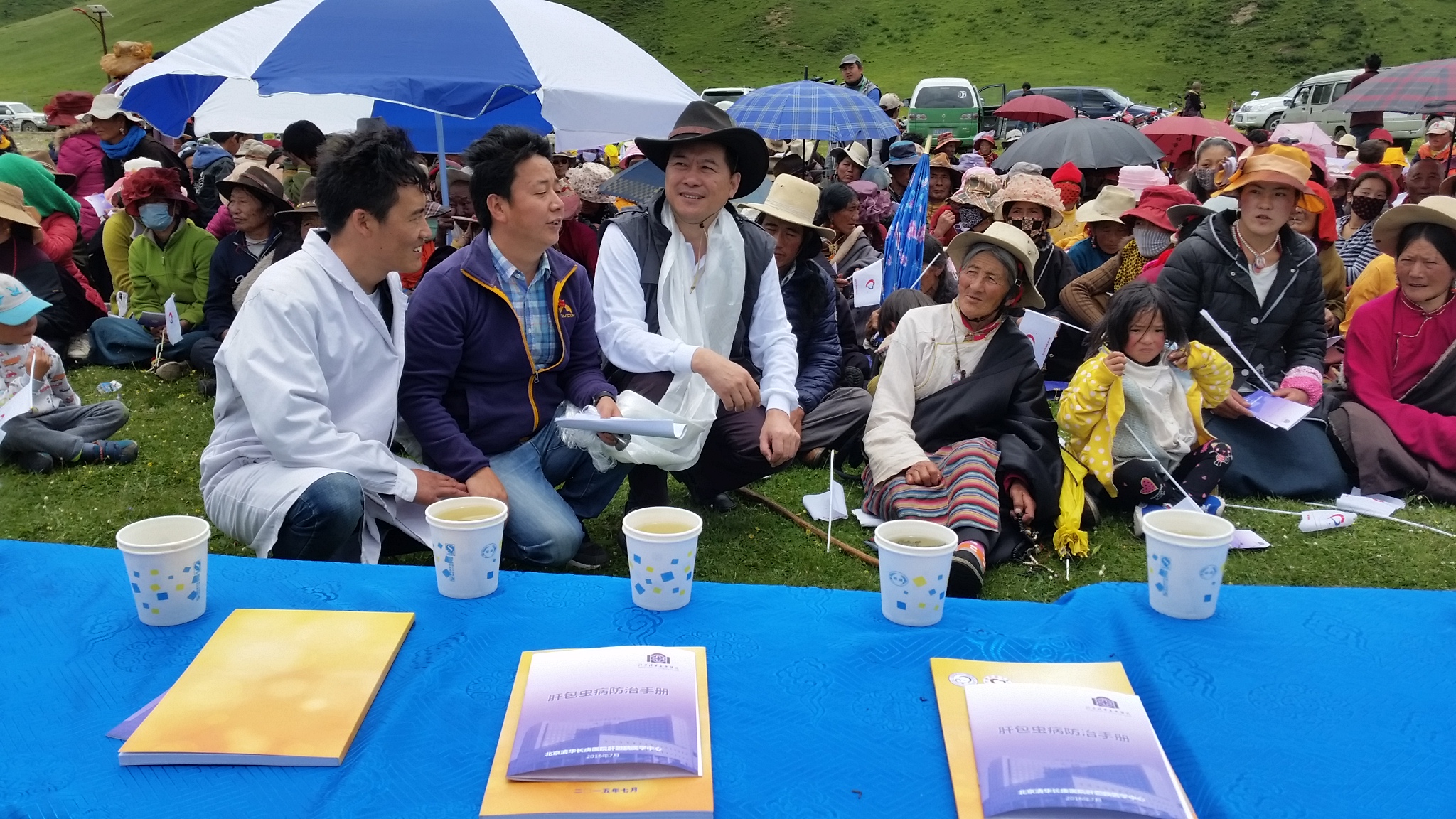 董家鸿(左三)在藏区开展健康宣教公益活动