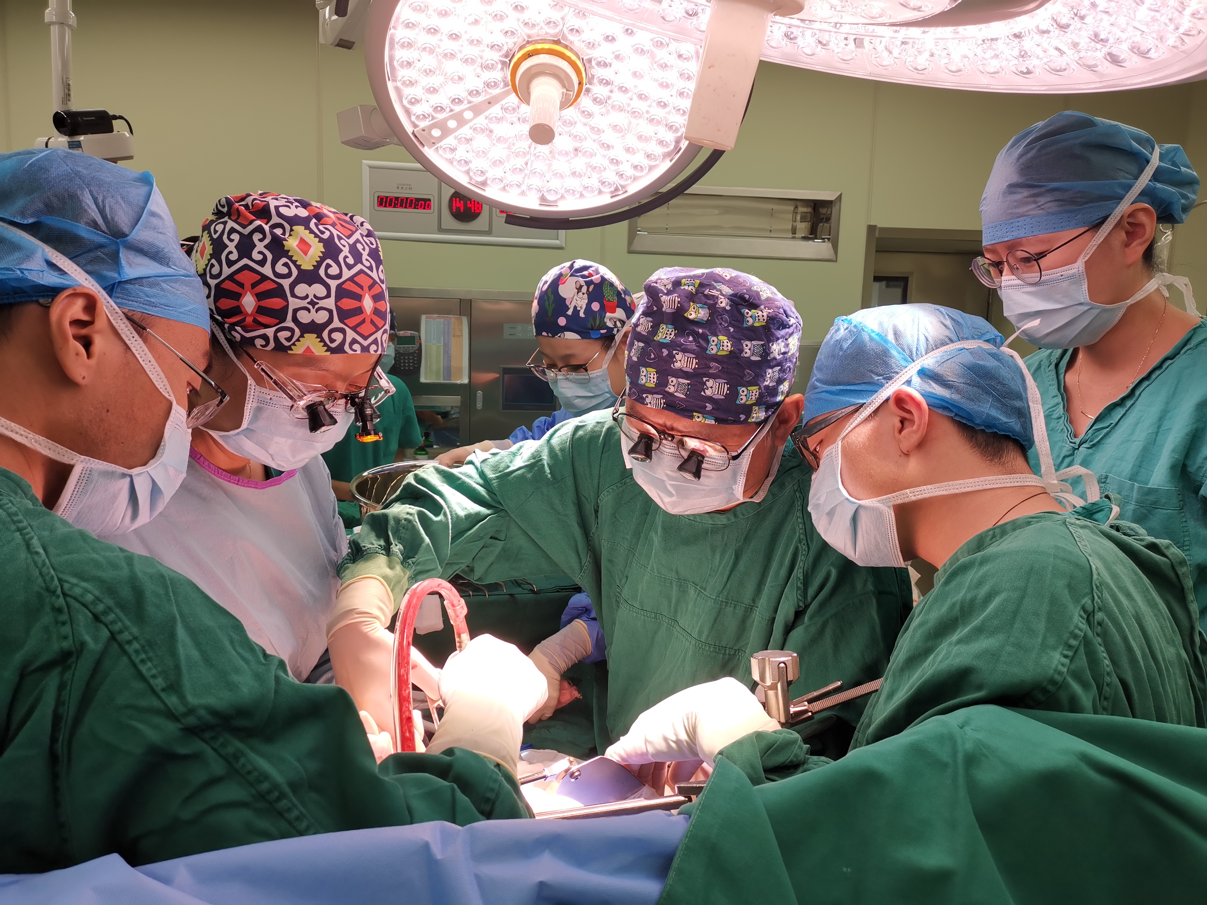 董家鸿(右三)带队进行肝移植手术