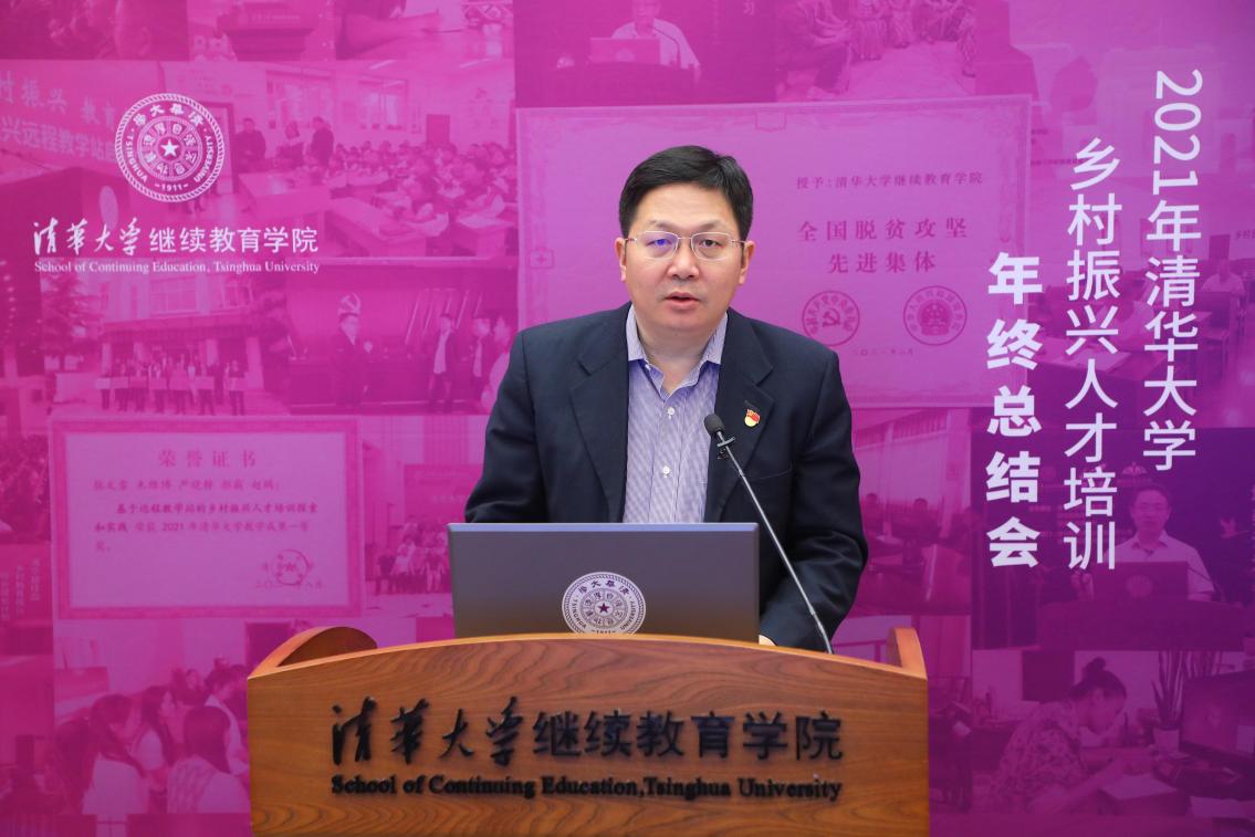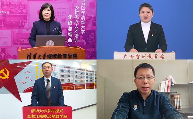 清华新闻网1月10日电 1月6日,2021年清华大学乡村振兴人才培训年终总结会举办。清华大学副校长、中国科学院院士王光谦,清华大学继续教育学院院长刘震,碧桂园集团党委副书记、副总裁、国强公益基金会常务副理事长李静,中共黑龙江省佳木斯市向阳区委书记秦世海出席并致辞。中共广西贺州市委常委、组织部长邓婉玲,中共黑龙江穆棱市委常委、组织部长沈明坤,中共云南南涧县委组织部副部长王锦桥作为优秀教学站代表线上发言交流。清华大学教育基金会、终教处、第一附属医院、清华老科协,华软基金会等单位负责人参加会议。会议由清华大学继续教育学院党委副书记、纪委书记张文雪主持。来自24省177个县区的3万余名乡村振兴远程教学站代表在线参会。