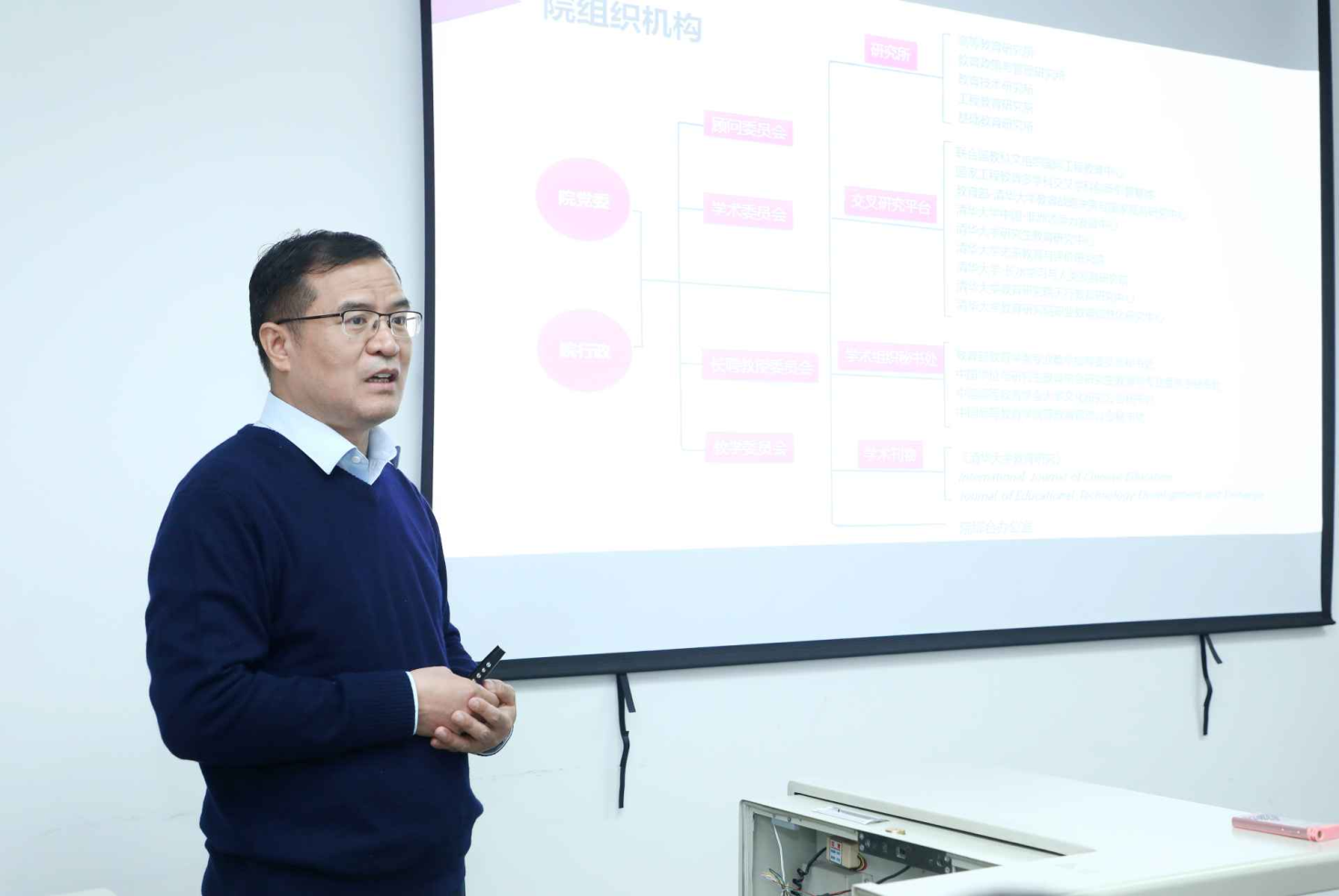 石中英汇报了学院历史沿革、组织架构和治理体系、学科定位与目标、师资队伍、人才培养、科学研究等情况以及未来展望。