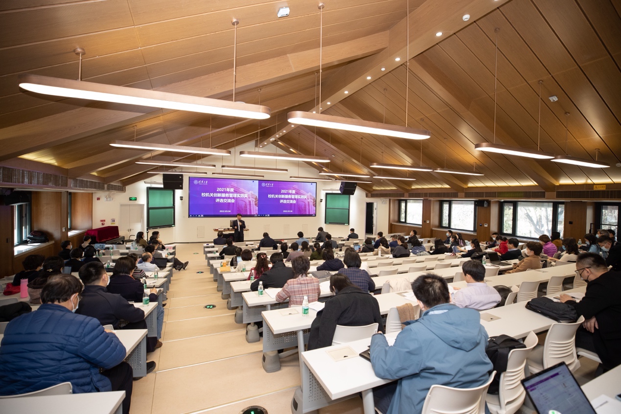 这里正是清华大学2021年度校机关创新服务管理实效奖评选交流会的现场。