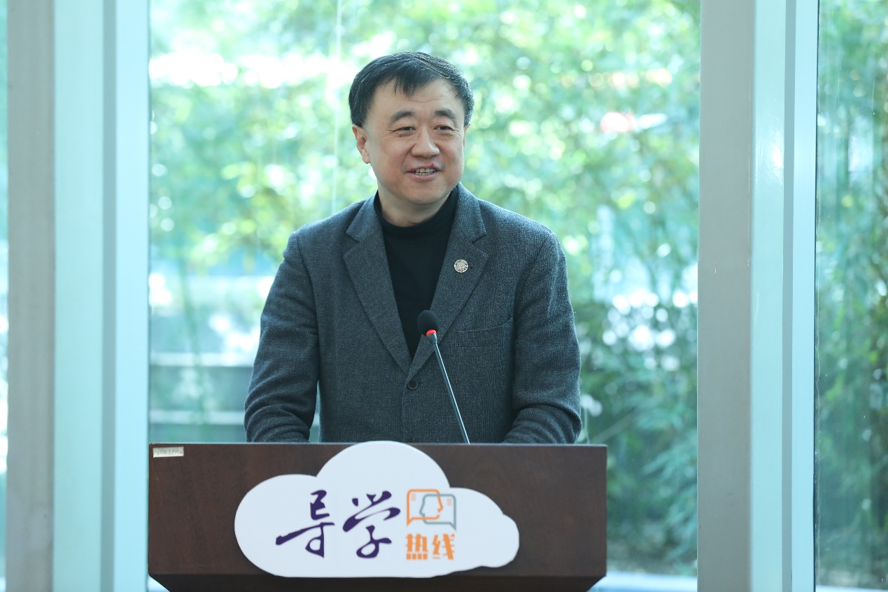 学生代表、电机系2020级硕士生胡天宇分享了“导学热线”咨询为自身成长带来的帮助,并衷心希望更多的青年师生可以因此受益。