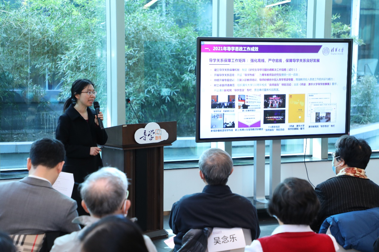 “导学热线”是“导学思政”工作体系的重要举措,邀请育人经验丰富的离退休教师担任咨询专家,依托“水木汇”线上预约平台和18处线下“导学交流空间”,搭建资深教授与青年教师以及研究生群体的交流平台,力求传承清华精神文化、关心青年教师发展、关爱青年学生成长。在“导学热线”工作基础上,学校还将进一步推进导学故事案例、导学工作坊等老教师与青年教师、学生导学交流和经验分享平台的建设工作。