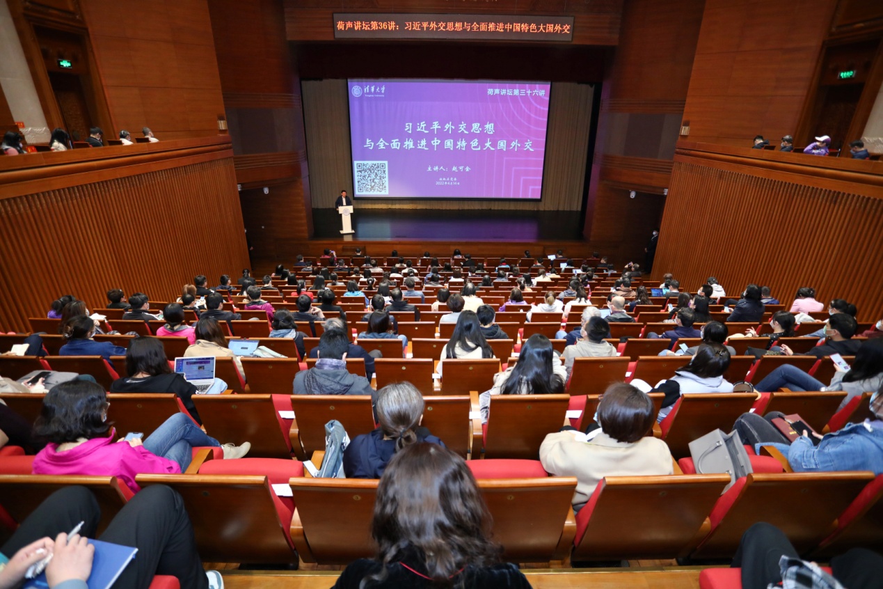 清华新闻网4月20日电(记者 陈晓艳 摄影 崔文瑞)4月14日上午,清华大学社会科学学院副院长、国际关系学系教授赵可金在蒙民伟音乐厅作题为“习近平外交思想与全面推进中国特色大国外交”的主题报告。这是校机关党委主办的“荷声讲坛”系列报告会的第三十六讲。校机关党委常务副书记欧阳沁主持报告会。