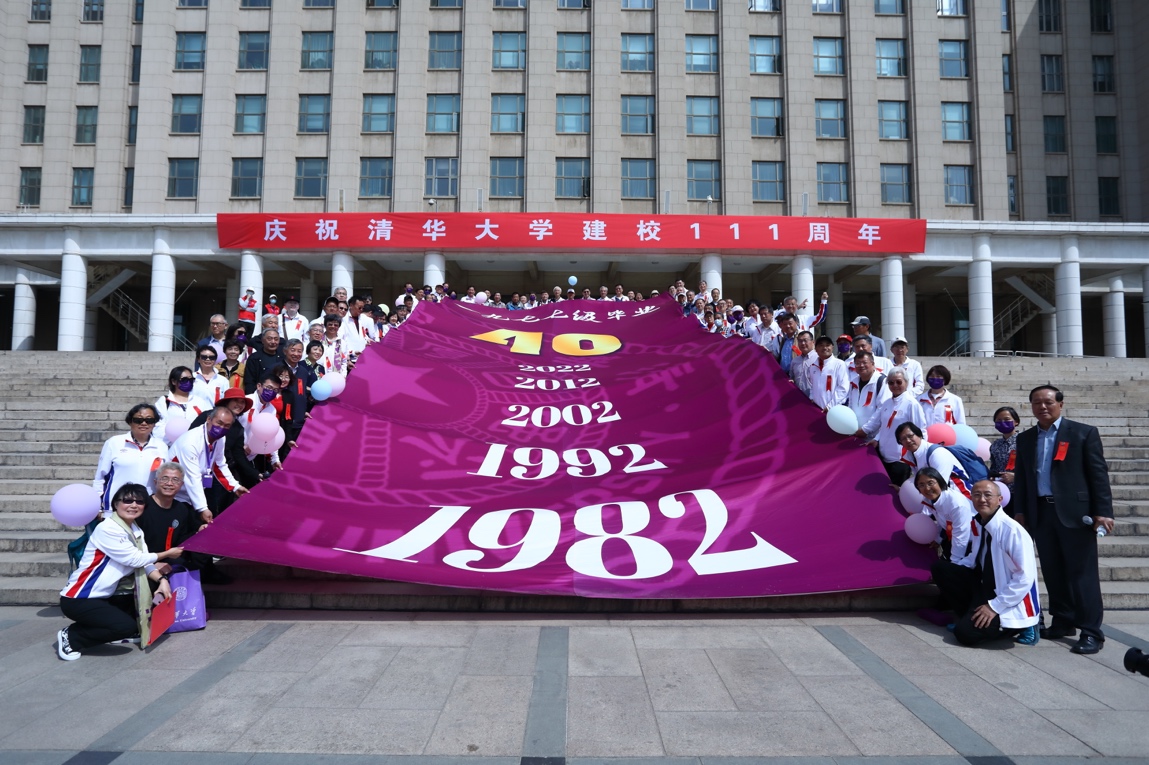 最后,清华大学1977级毕业40周年纪念活动台阶揭幕仪式举行。“西山苍苍,东海茫茫,吾校庄严,巍然中央。”校歌响起时紫色的覆盖布徐徐升起,逐次露出台阶上1982年毕业、毕业十年、二十年、三十年、四十年的金色字迹,彰显着他们甘为人梯、愿做铺路石的精神,也是他们留给母校最珍贵的纪念。