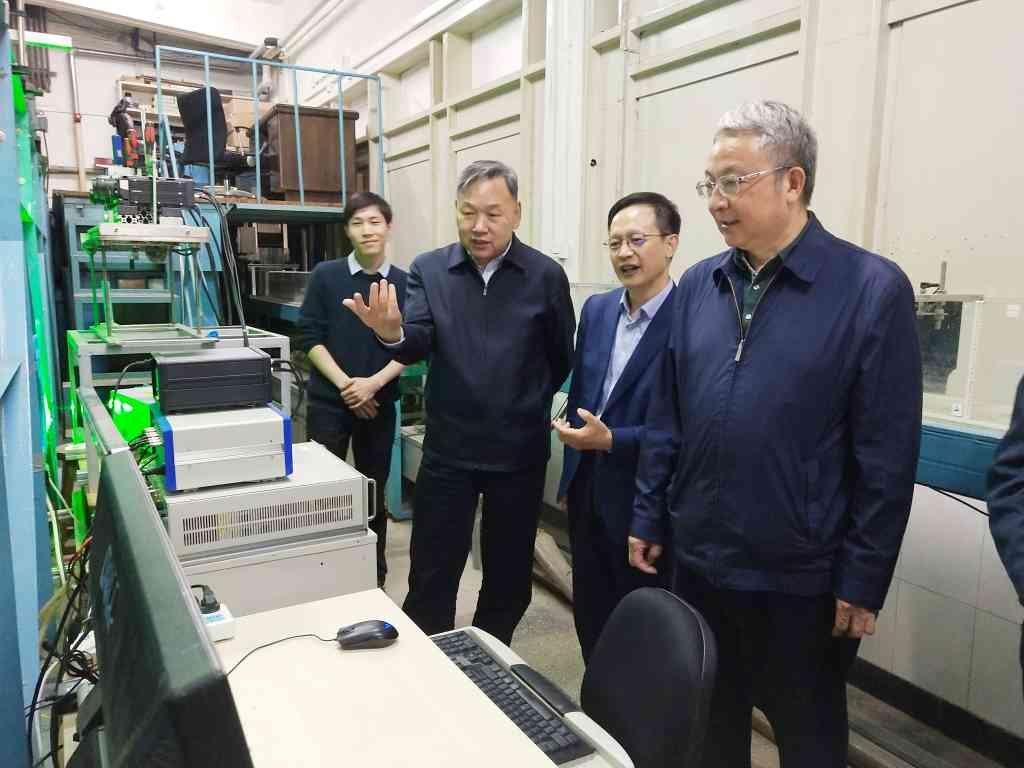 在水利水电工程系泥沙馆,陆桂华参观了空中水资源基础研究的实验室和设备,听取了王光谦关于水圈科学的学术报告,并就水利工程基础研究与相关人员进行了座谈交流。