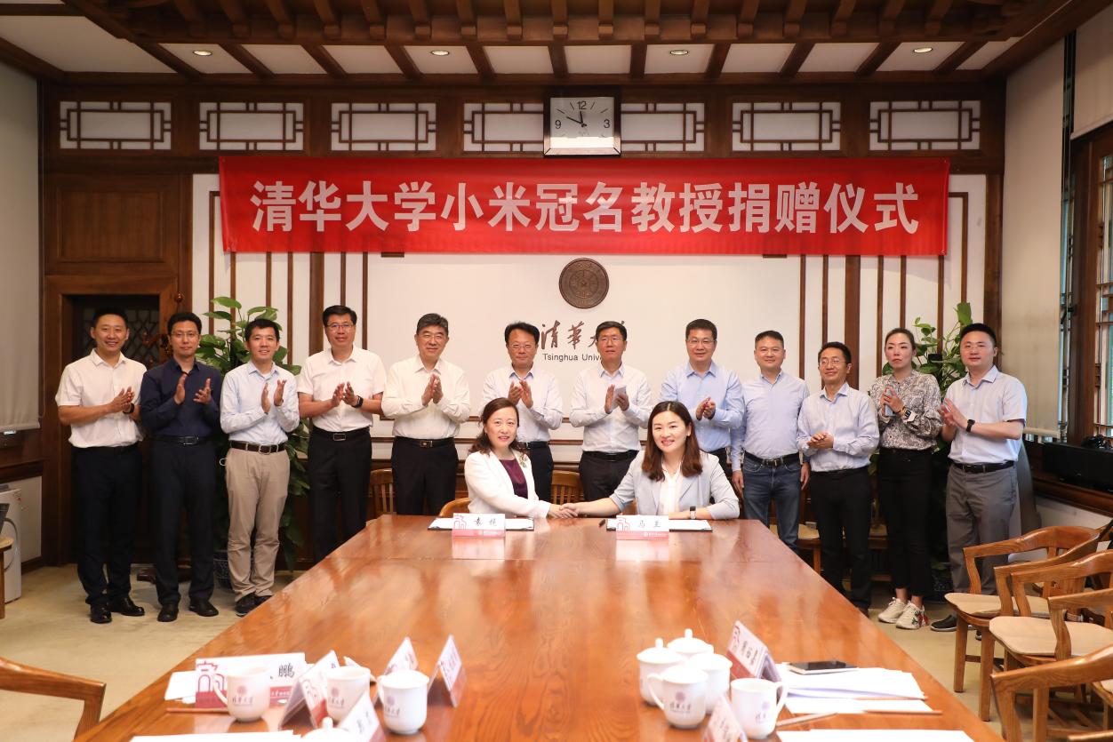 清华新闻网7月10日电(记者 吴子璇 摄影 曹文鹏)7月8日,“清华大学小米冠名教授”捐赠仪式在工字厅举行。此次捐赠,将用于支持清华大学小米助理教授及副教授席位,助力学校青年创新人才的引进与队伍建设工作。小米集团联合创始人、高级副总裁刘德,小米集团合伙人、高级副总裁、清华大学化学系94级校友卢伟冰,小米集团高级副总裁、清华大学物理系91级校友曾学忠,清华大学校长王希勤,副校长郑力等出席仪式,教育基金会秘书长袁桅主持仪式。