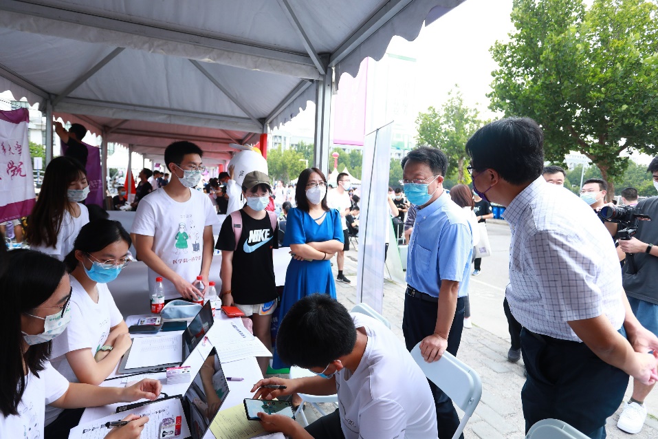 王希勤一行先后来到机械、航空与动力类,临床医学类,为先书院,日新书院,体育代表队等学院的迎新点,看望新生和参与迎新工作的师生员工。