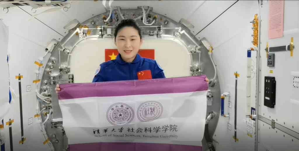 中国首位女航天员,神舟九号、神舟十四号乘组航天员,社科学院2014级博士校友刘洋在中国空间站手持院旗通过视频为学院成立十周年送上祝福。“社科精神、包纳寰宇,人文精神、继往开来”,刘洋动情叙说了对社会科学的理解,并表达了对祖国繁荣富强、学校与学院长足发展的美好祝愿。