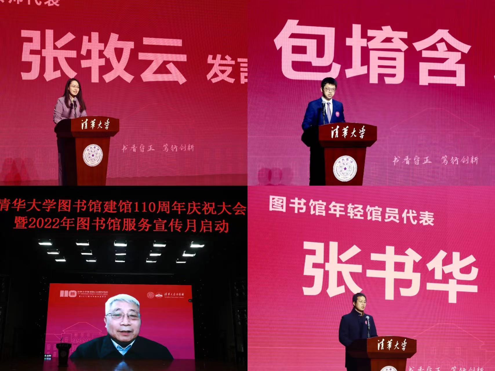 清华大学图书馆馆长金兼斌回顾了110年来图书馆与学校风雨同舟、与中国图书馆界勠力同心的历史,总结了图书馆在组织管理、馆藏建设、服务创新和资源共享等诸多方面作出的开创性工作。他表示,党的二十大刚刚胜利召开,图书馆将认真学习贯彻落实党的二十大精神和清华大学第十五次党代会精神,走内涵式高质量发展道路。围绕信息资源中心、知识服务中心、文化交流中心三个中心,为建设研究型、数字化、开放式的世界一流大学杰出图书馆而努力。