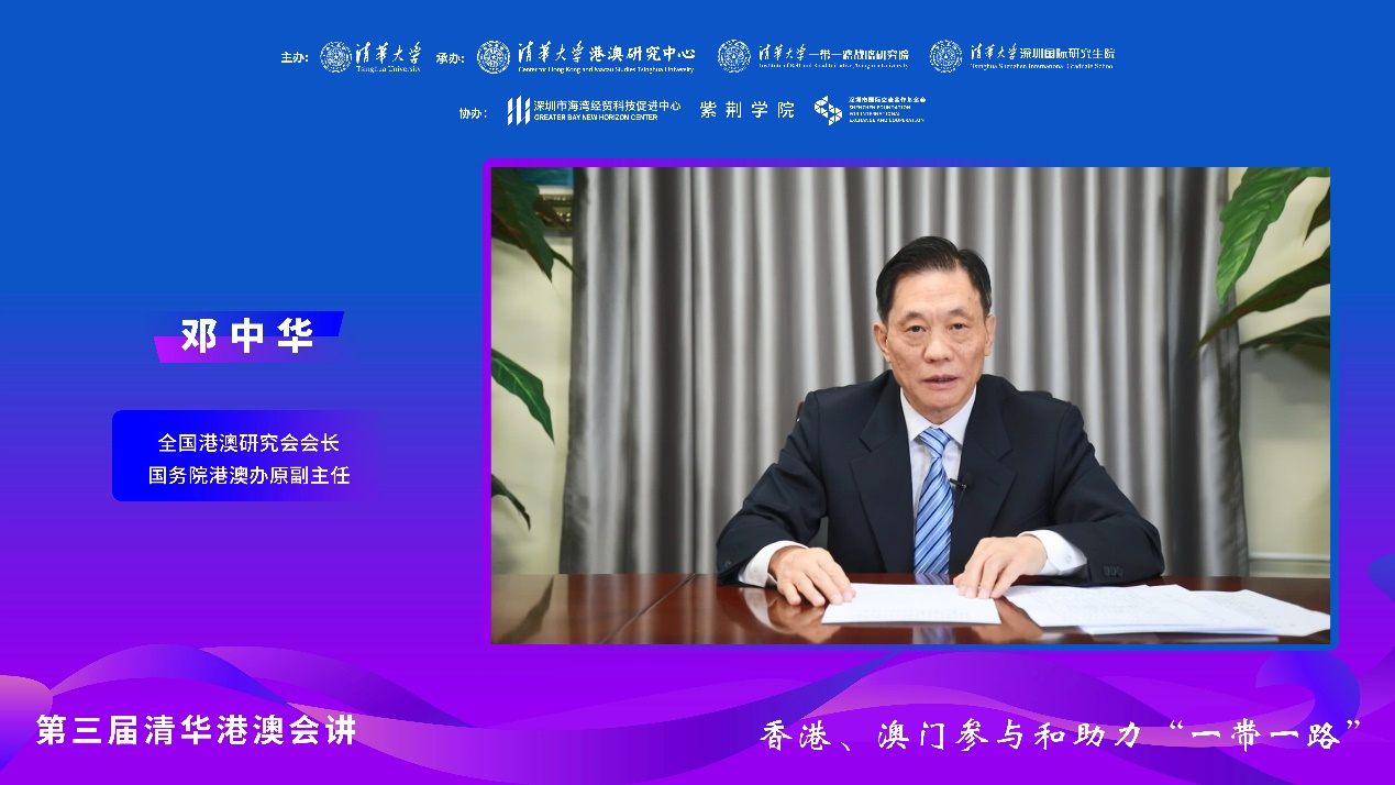 清华大学校务委员会副主任、清华大学港澳研究中心管理委员会主任史宗恺与全国港澳研究会会长、国务院港澳办原副主任邓中华出席开幕式并致辞。