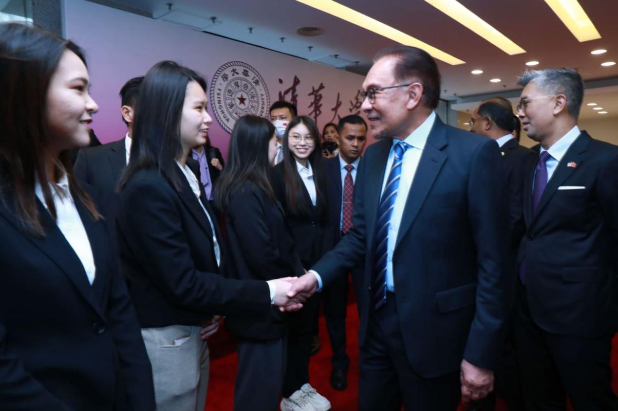 会谈前,安瓦尔还与在清华大学学习的马来西亚留学生代表进行了交流互动。