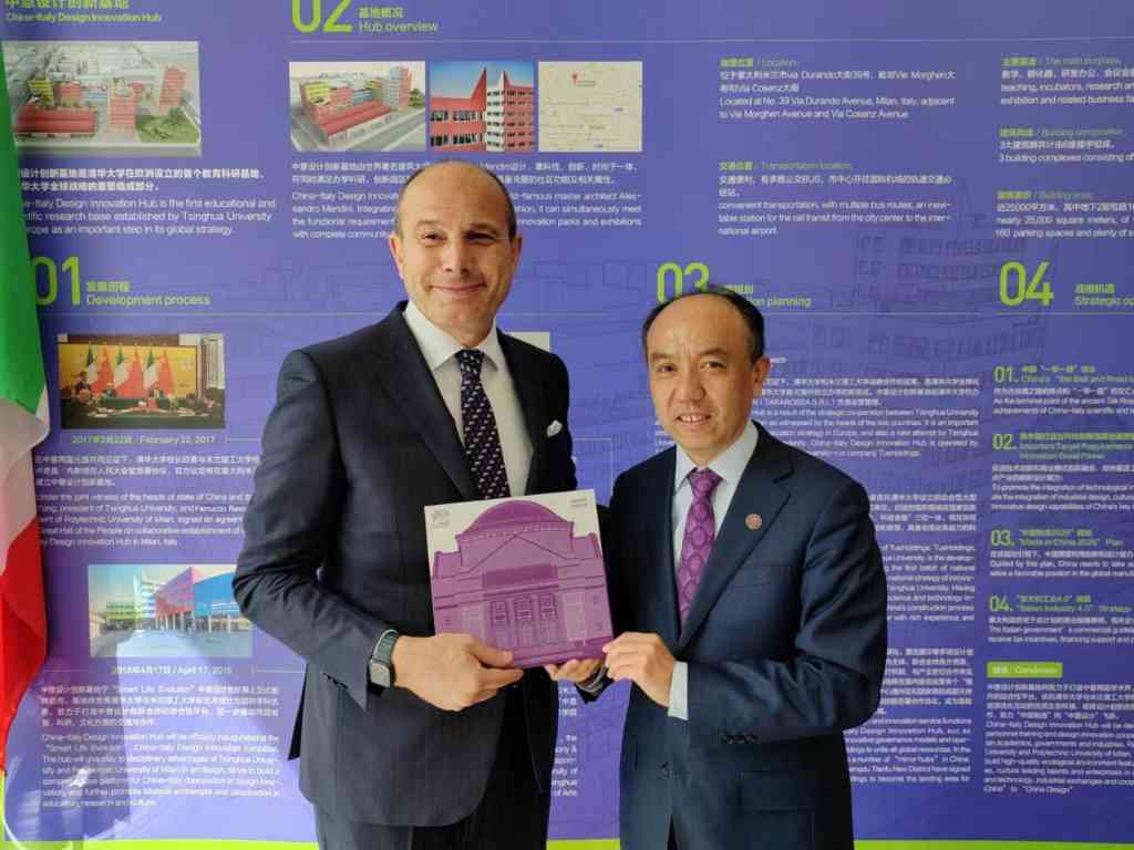 王宏伟在致辞中表示,清华大学一直与欧洲各大高校及社会各界开展并保持着广泛而深入的合作交流,在中欧关系的征程中肩负起高等教育应当承担的使命和责任。清华大学与米兰理工大学的战略合作伙伴关系正是其中的标杆。长期以来,两校交往稳步推进,在人才培养、教师交流、联合研究等领域均取得了一系列丰硕成果。两校合作共建的中意设计创新基地,是清华在欧洲设立的首个基地,也是清华大学全球战略的重要组成部分,凝聚了政府、产业与学术界的多方智慧。期待通过此次系列活动的举办,多元的艺术风格能够在这里彼此共鸣、同频共振,构建国际设计行业的新生态。