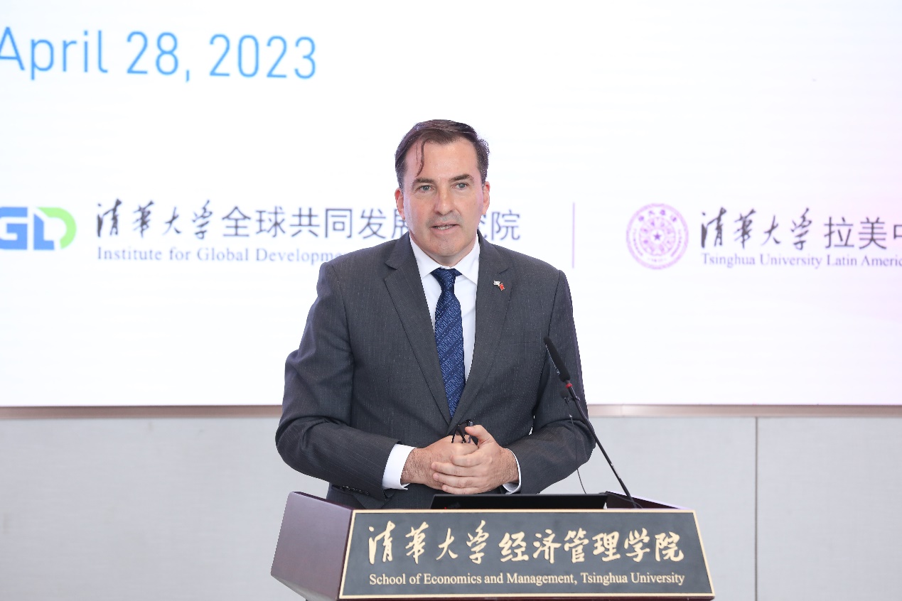 清华新闻网5月7日电 4月28日,“高质量发展与中国式现代化”-清华大学与拉美及加勒比驻华大使共话中国新发展活动在清华大学经济管理学院建华楼举行。来自拉美和加勒比地区20个国家驻华使馆和代表机构的驻华使节和代表30余人出席。清华大学校长王希勤,拉美和加勒比使团团长、乌拉圭驻华大使费尔南多·卢格里斯(Fernando Lugris)、外交部前驻秘鲁大使梁宇分别作开幕致辞,清华大学副校长王宏伟作闭幕致辞。