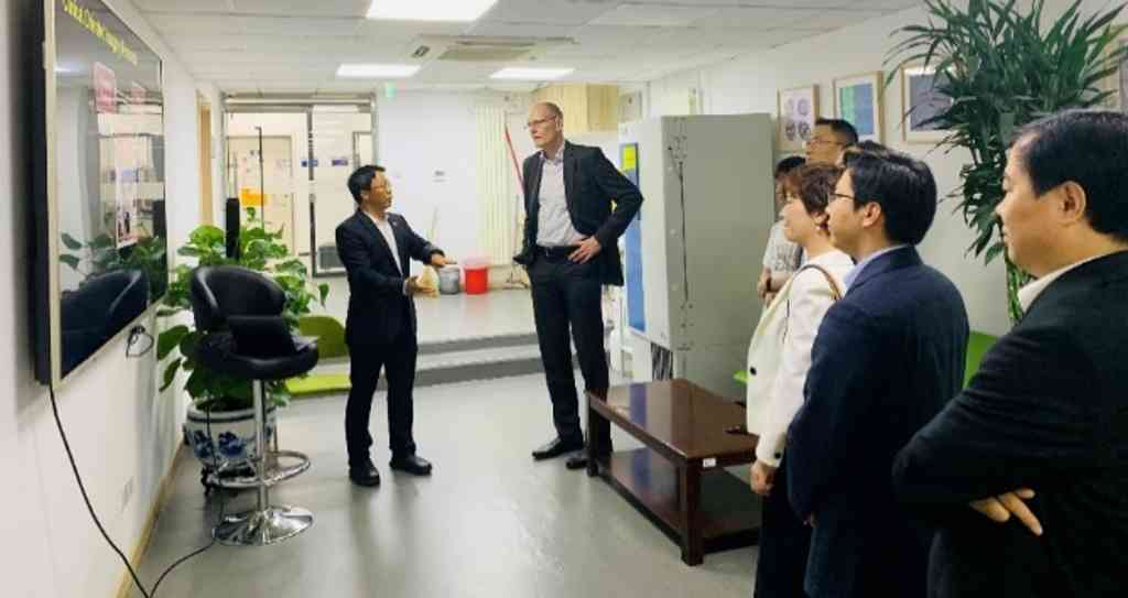 随后,孟天齐一行参观了清华大学生物医学工程系影像中心,医学院党委书记洪波、生物医学工程系影像中心副主任李睿和生物医学工程系博士生翁文海对神经影像与脑机接口、医学影像技术开发与临床应用和医学影像引导下的手术机器人开发等进行了介绍。