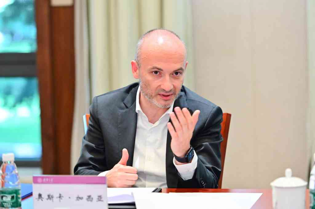 杨斌代表清华大学对奥斯卡·加西亚·马塞拉斯一行的来访表示欢迎,向爱特思对清华大学给予的支持表示感谢。他表示,清华大学与爱特思的合作是建立在信任和友谊基础之上的,从支持经管师生海外交流到“一带一路奖学金”,再到可持续发展基金项目以及与美术学院开展的合作,方方面面均取得了富有成效的结果。此次是爱特思第三次捐赠支持经管学院,希望未来双方进一步加深合作纽带,结合企业商业实践优势,在人才培养、公共卫生、碳中和等方面开展交流,延续并发展这份珍贵的友谊。