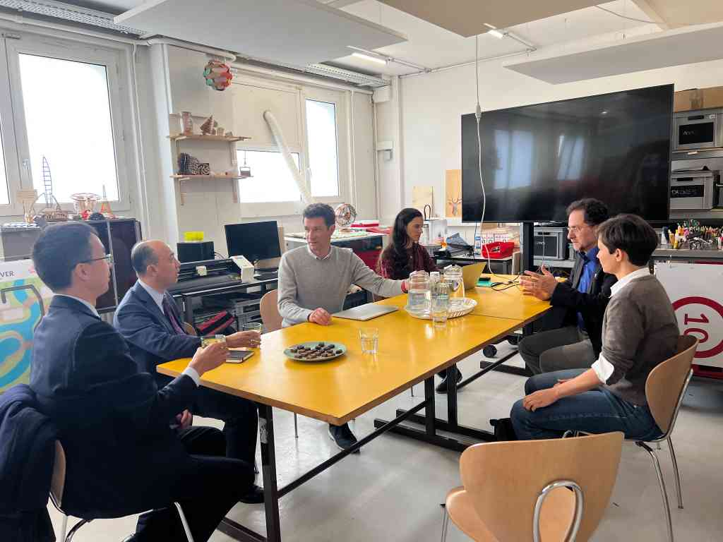 当天下午,王宏伟参观了日内瓦大学生物技术学院和生物技术创新园,与生物技术创新园健康创新交换项目负责人讨论生物技术创新领域合作事宜;会见了日内瓦大学创业中心主任托马斯·马亚尔(Thomas Maillart),就联合国训练研究所(UNITAR)、清华大学经济管理学院(TSEM)、日内瓦大学经济与管理学院(GSEM)三方开放创新协议中生物技术和医药技术领域研究人员交换事宜进行商讨;会见了日内瓦大学全球健康学院博士项目负责人尼古拉斯·雷(Nicolas Ray),就两校开放健康项目合作进行交流。会谈后,王宏伟看望了就读清华大学-日内瓦大学可持续发展公共政策双硕士学位项目的同学们,并进行了简短交流。