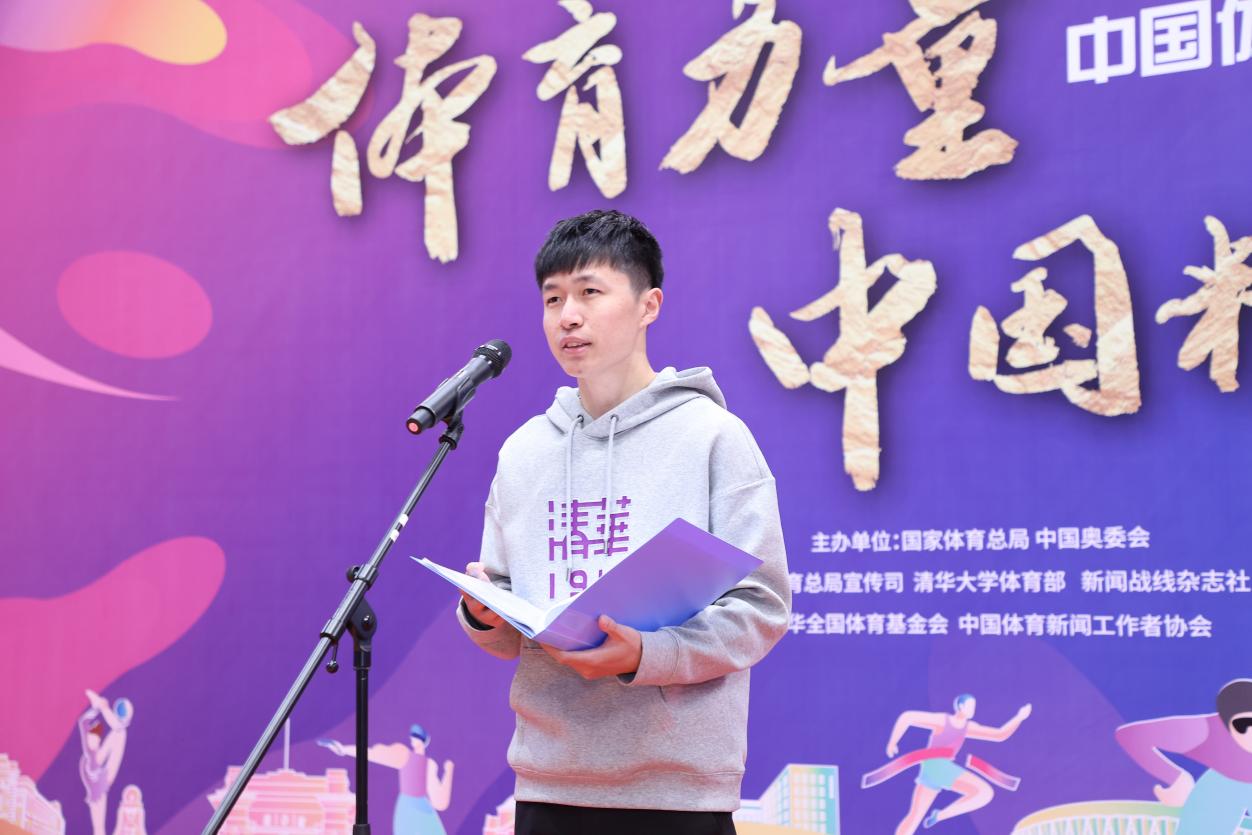 清华大学有着光荣的体育传统,“争取至少为祖国健康工作五十年”“无体育 不清华”等口号影响和鼓舞着一代代青少年。活动中,清华大学学生代表、机械系2020级博士生、乒乓球队队员周冉讲述了自己在参与体育过程中砥砺成长的故事,并与公管学院2022级硕士生、田径标枪队队员张家良,社科学院2023级硕士生、女篮队员宋思琪,社科学院2021级硕士生、田径中长跑队队员李俊霖,建筑学院2020级本科生、击剑队队员周汝赟一同朗诵“中华体育精神颂”。启动仪式结束后,与会领导和嘉宾参观了展览和清华大学体育荣誉室。