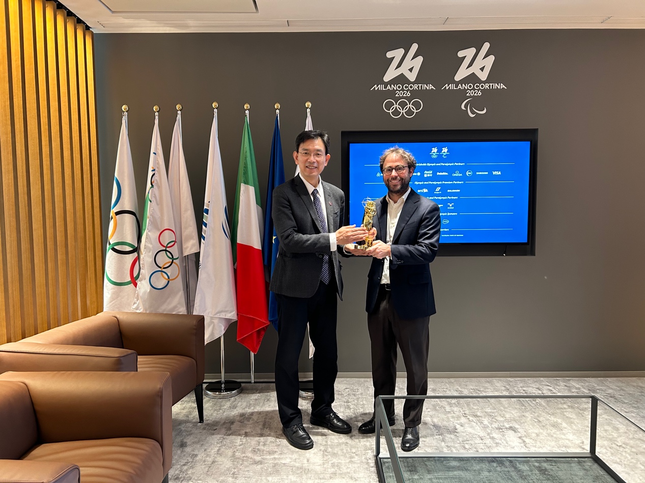 同日,李路明一行访问了2026年米兰科尔蒂纳冬奥会组委会总部,与文化遗产部负责人雅各布·马泽蒂(Iacopo Mazzetti)交流。