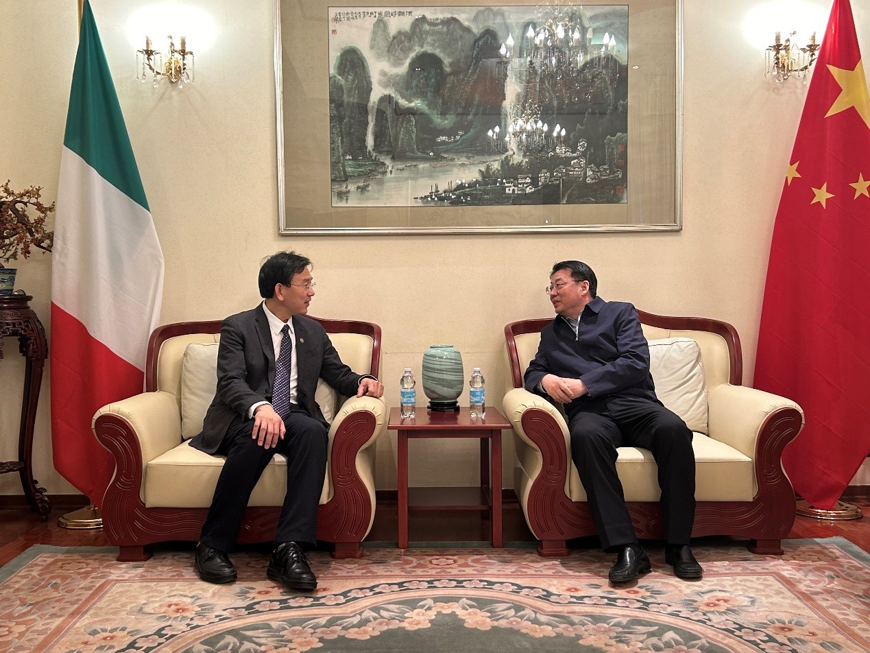 李路明向刘侃介绍了清华大学持续深化改革和推进实施全球战略的最新进展并表示,中意设计创新基地是清华大学全球战略的重要组成部分,也是清华在欧洲设立的首个教育科研基地,感谢总领馆对基地建设和发展的关心与支持。
