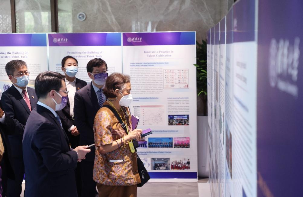 诗琳通公主还参观了清华大学农业农村工作主题展览,详细了解清华服务乡村振兴战略行动部署、涉农智库建设、乡村振兴工作站、创新人才培养、远程教育支持乡村发展、定点帮扶、农业科技进步、农村研究成果、农业国际合作交流等方面的情况。公共管理学院副院长、中国农村研究院执行院长王亚华作展览介绍。