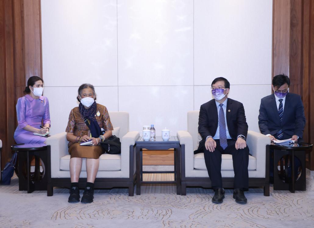 诗琳通公主表示,自己对清华大学在农业农村发展领域开展的工作非常感兴趣,清华大学与泰国企业开展了反贫困项目合作,希望此行可以了解更多的相关情况。面向未来,愿积极推动泰国与清华的友好交流合作。
