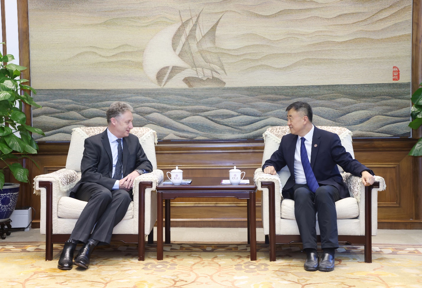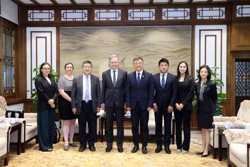 杨斌对吉思德的来访表示欢迎,并简要介绍了清华大学在环境治理、人工智能、生物医药等领域的最新研究进展。杨斌表示,清华大学与多所澳大利亚高校保持着长期良好的合作关系,在师生交流、科研创新等方面交流密切并达成切实成果。希望未来能同澳大利亚高校进一步加强合作,通过双学位联合培养项目、科研创新协作等形式促进两国人才交流,携手应对气候变化、医疗健康等领域的全球性挑战。