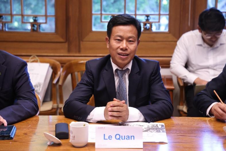 黎君介绍了越南河内国家大学的近期发展情况和未来发展战略规划。他表示,很高兴来到清华大学访问,与清华大学签署合作协议,并参加即将举行的2024清华高等教育论坛。越南河内国家大学特别重视与清华大学的合作,希望能够在未来进一步推进与清华大学的各项合作,不断增进双方人员学术交流。