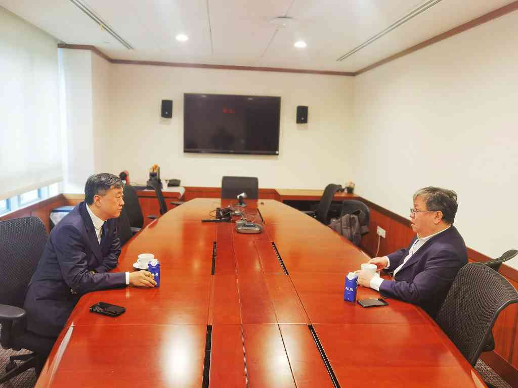 论坛开幕前,杨斌与新加坡国立大学常务副校长刘斌进行会谈,双方各自介绍了近期对外交流、人才培养、科研合作等方面的情况,并就未来开展合作的学科领域、联合培养学生的形式等进行交流。