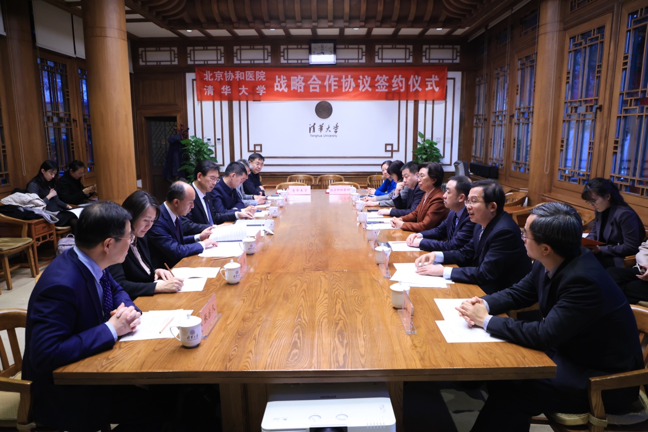 李路明对张抒扬院长一行来访表示欢迎,对北京协和医院长期以来对学校发展的支持表示感谢。他说,发展医学是清华人近百年的追求和梦想,也是清华大学服务国家战略需求、迈向世界一流大学前列和建设世界顶尖大学的重要使命。清华大学高度重视与北京协和医院合作,双方渊源深厚、合作密切,践行自强不息、厚德载物的清华校训和严谨、求精、勤奋、奉献的协和精神,在医学人才培养、科学研究等方面合作成果丰硕。面向未来,期待双方以本次签约为新起点,以党的二十届三中全会精神为指引,推动医学全方位合作落到实处;充分发挥各自优势,积极探索人工智能赋能医学发展,深化在人才培养方面的合作,共同培育更具“医者仁心”的新时代医学领军人才;完善医学学科布局,加强基础医学与临床相结合,推进医学基础研究、临床转化研究和技术成果的转化应用;回应人类健康重大需求,提升医疗健康服务水平,共同为推动医学研究、医学教育事业发展和服务健康中国战略作出新的更大贡献。