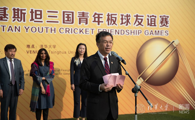 史宗恺首先对来自阿富汗和巴基斯坦两国青年板球代表队的全体成员及嘉宾表示热烈欢迎。他介绍了曾在清华艺术博物馆展出的阿富汗国家宝藏展和新闻学院的“一带一路——大篷车”项目并表示,此次比赛不仅为清华学生提供了解板球运动的机会,也将加深对彼此文化的了解。希望阿巴两国青年运动员能和清华的同学们成为朋友,互相交流学习。